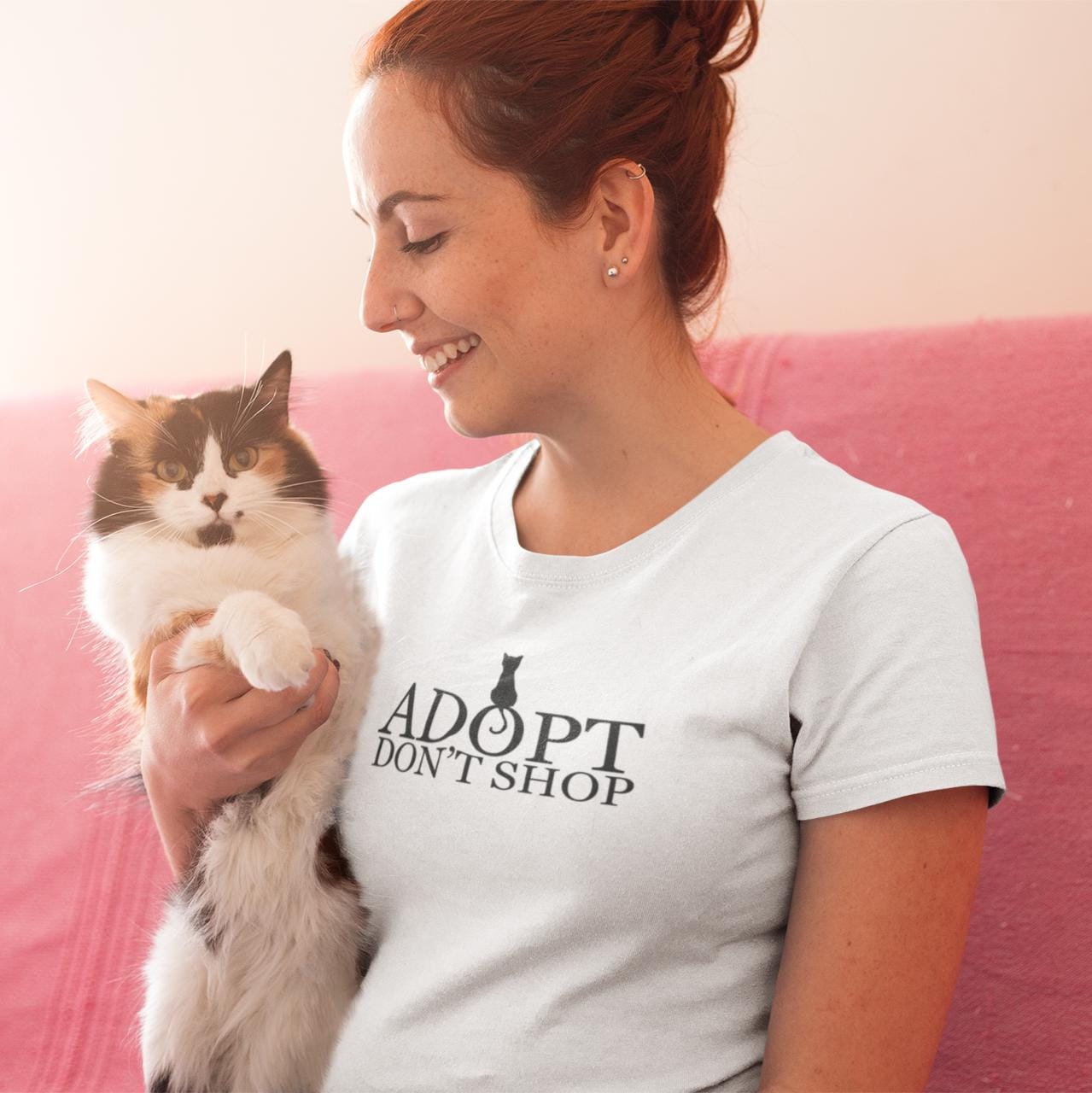 Printify T-Shirts White / S Adopt Don't Shop Black Cat Women's Softstyle Tee
