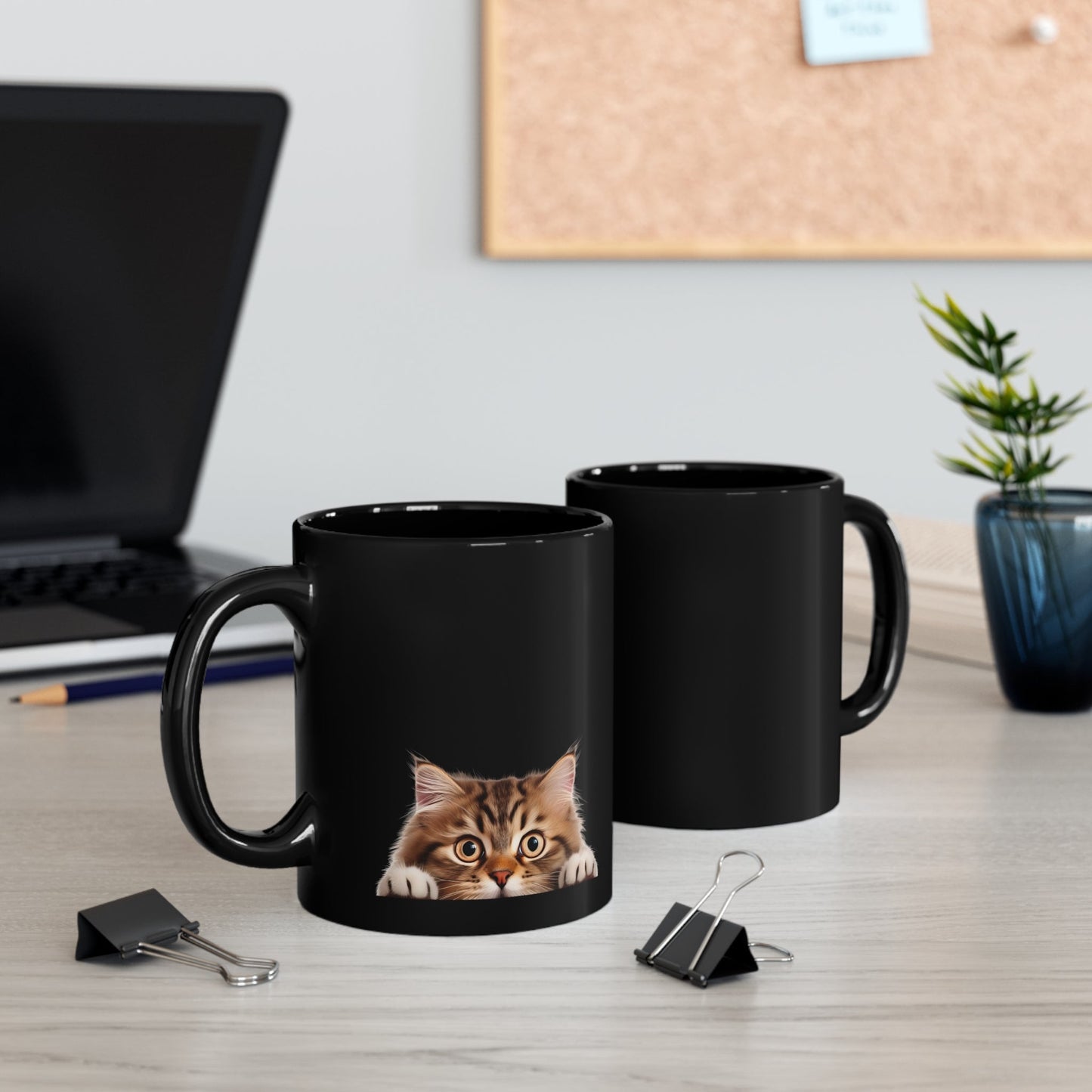 Peeking Cat Black Ceramic Mug 11 oz - Siberian
