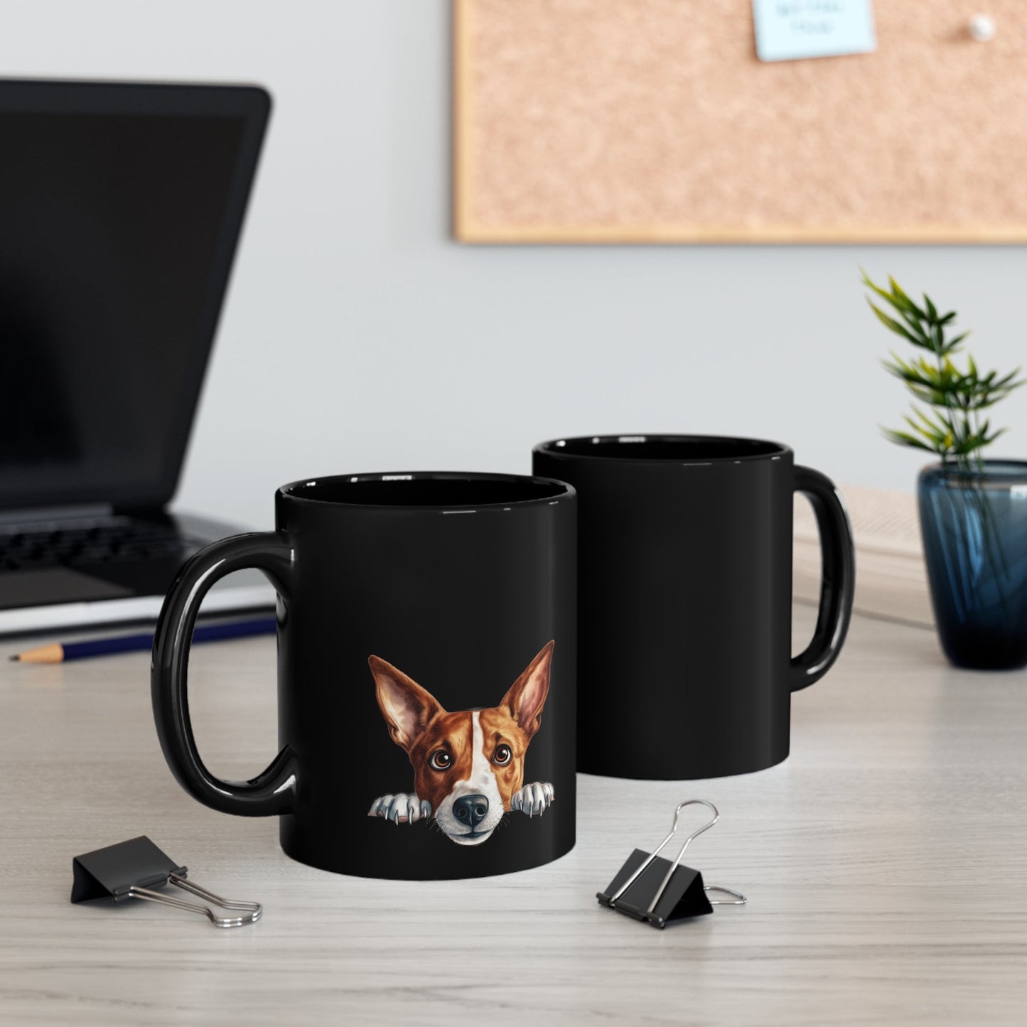 Meet your new favorite mug – a must-have for dog lovers! Kick back with your go-to drink in this awesome dog mug featuring a cute peeking Basenji. Crafted from sturdy ceramic, it’s not just a mug; it’s like a daily dose of dog-loving joy. Perfect for surprising the dog lover in your life, this mug combines usefulness with the charm of man’s best friend, turning every sip into a delight.
