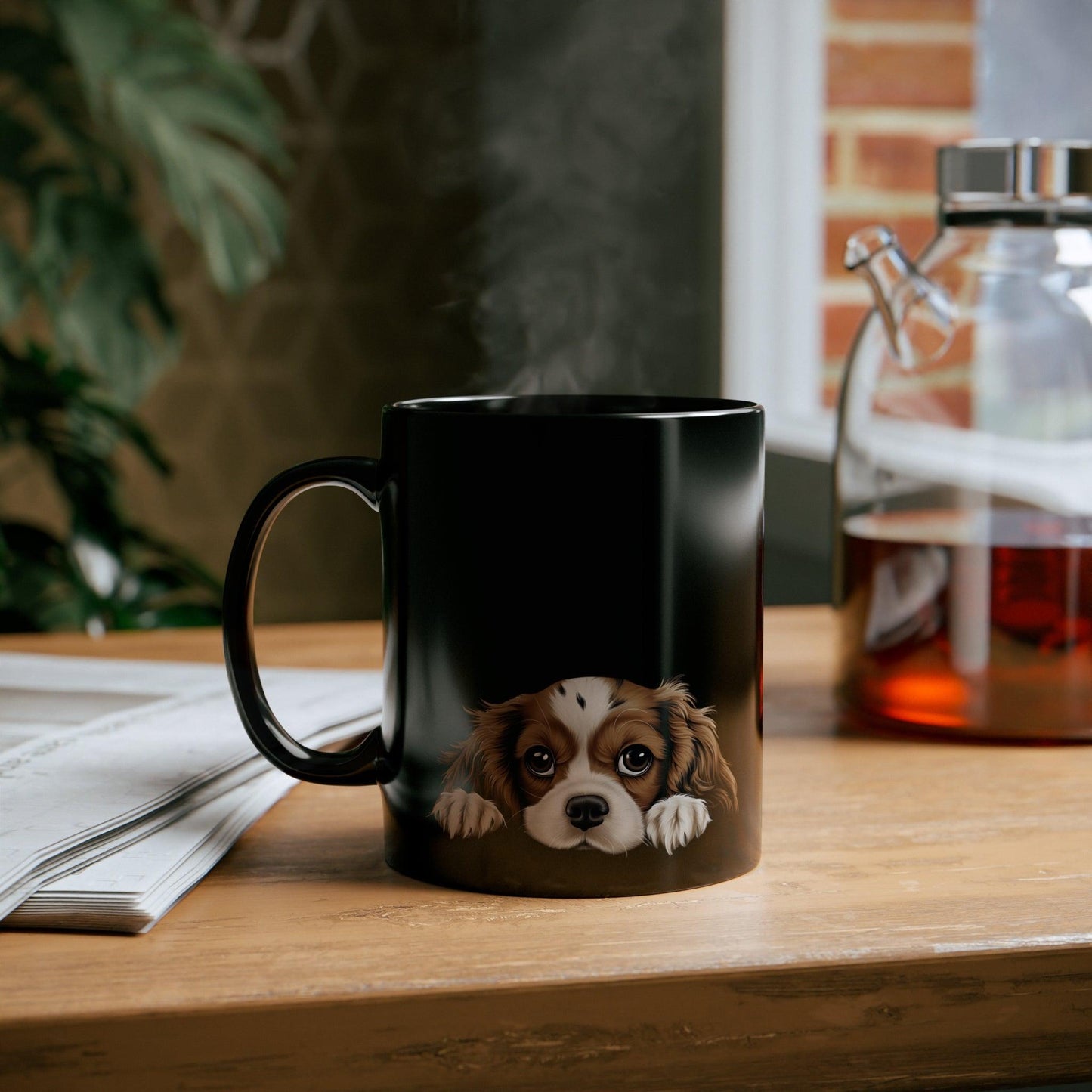 Meet your new favorite mug – a must-have for dog lovers! Kick back with your go-to drink in this awesome dog mug featuring a cute peeking King Cavalier Charles Spaniel pup. Crafted from sturdy ceramic, it’s not just a mug; it’s like a daily dose of dog-loving joy. Perfect for surprising the dog lover in your life, this mug combines usefulness with the charm of man’s best friend, turning every sip into a delight.