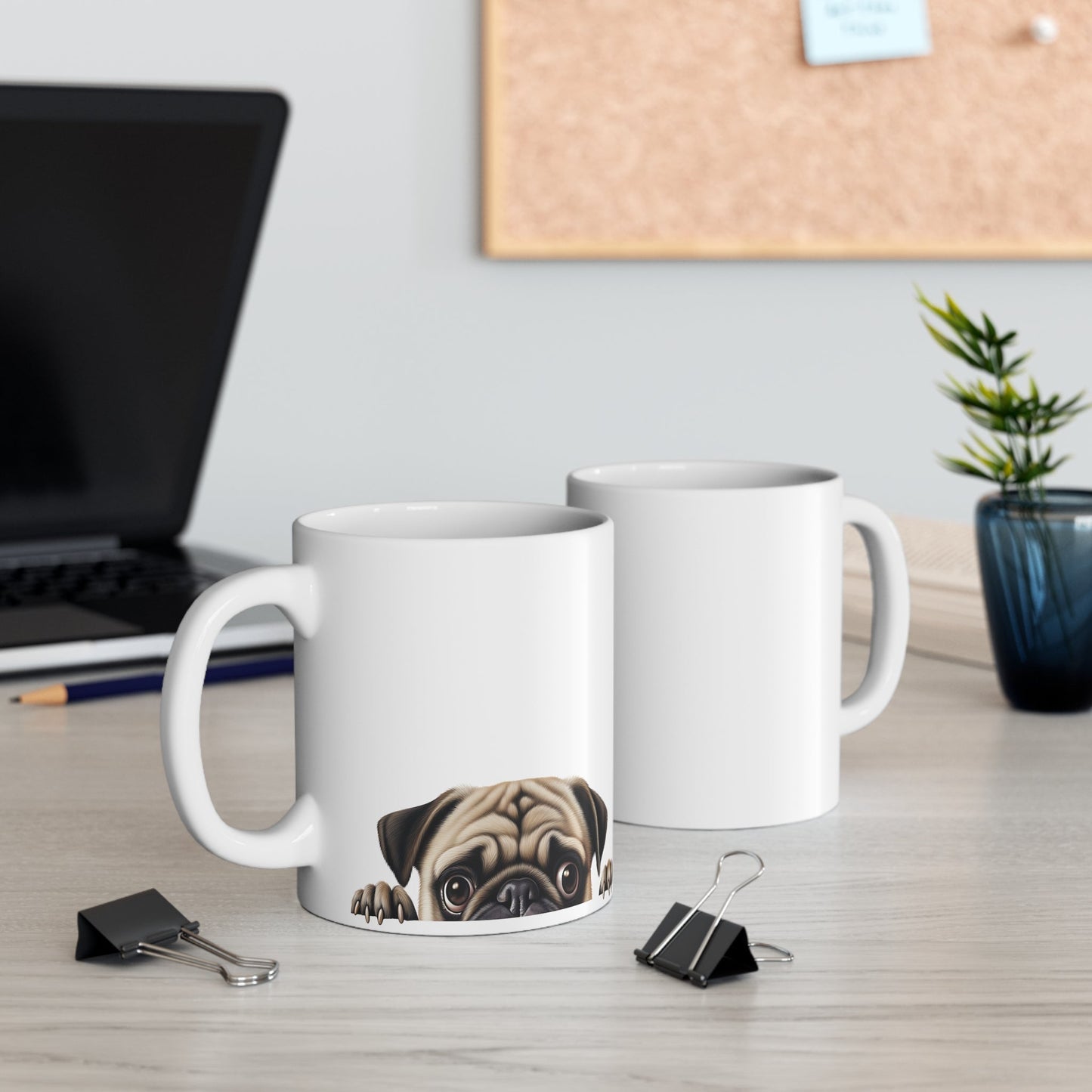 Meet your new favorite mug – a must-have for dog lovers! Kick back with your go-to drink in this awesome dog mug featuring a cute peeking Pug. Crafted from sturdy ceramic, it’s not just a mug; it’s like a daily dose of dog-loving joy. Perfect for surprising the dog lover in your life, this mug combines usefulness with the charm of man’s best friend, turning every sip into a delight.
