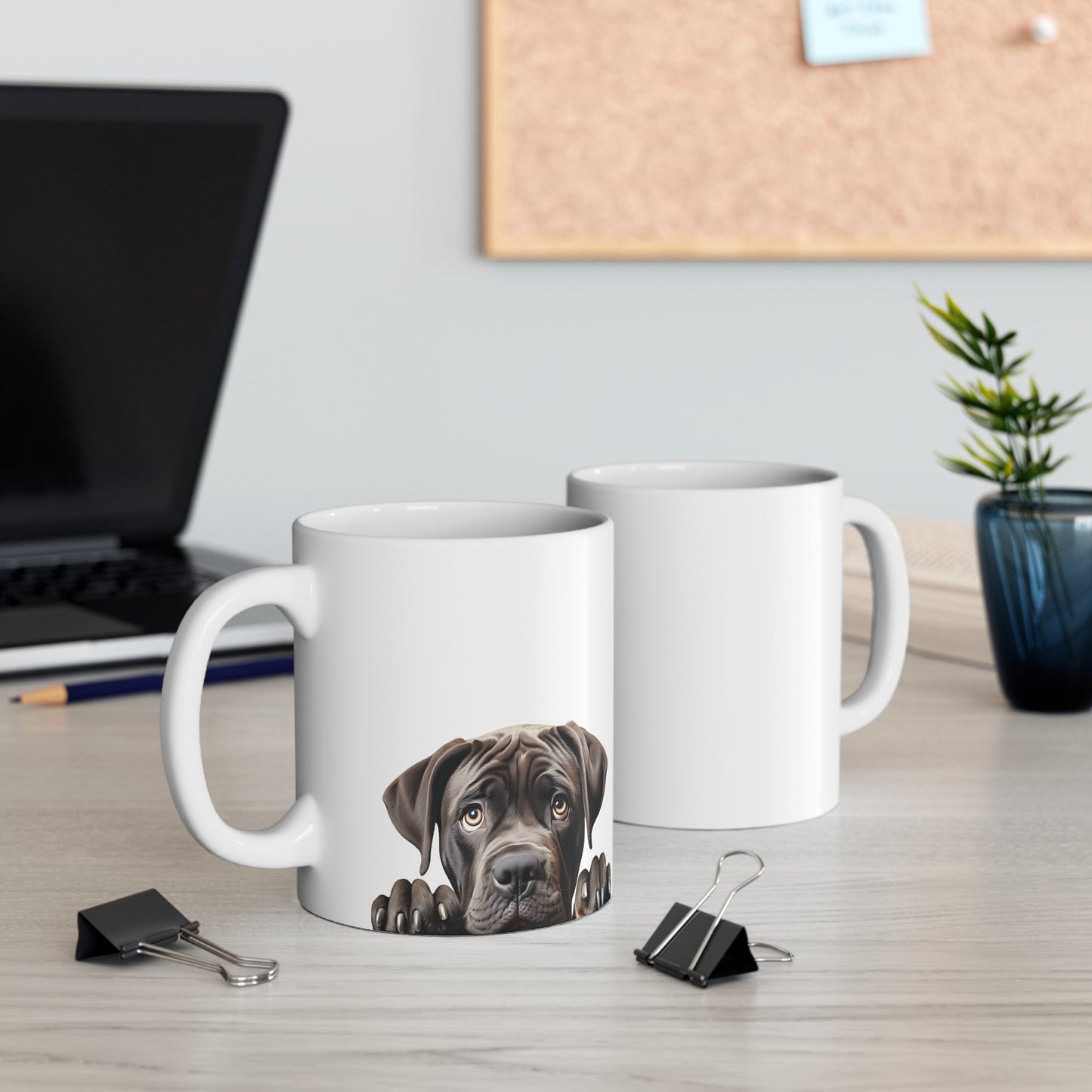 Peeking Dog White Ceramic Mug 11 oz - Cane Corso