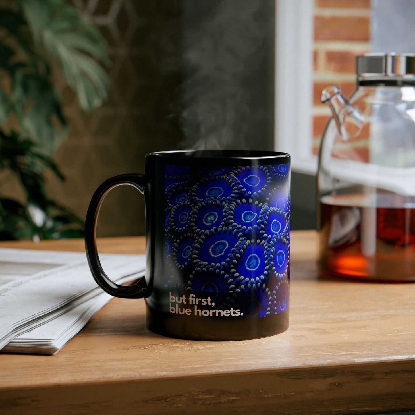 Blue Hornet Zoas Mug perfect for coffee, tea or your favorite hot beverage, this classic shape black, durable 11 oz ceramic mug makes an appreciated gift to every reef lover.