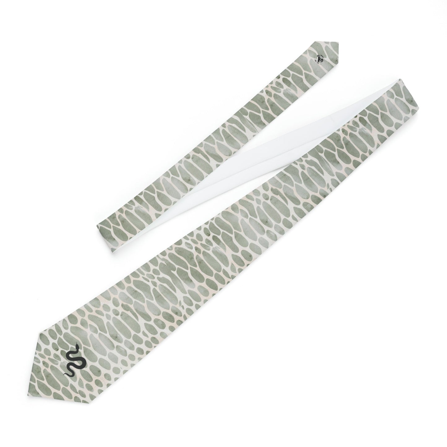 Show off your love for snakes with the Snake Print Necktie. Featuring a charming snakeskin print design and snake logo, this tie adds a playful touch to any outfit. Perfect for reptile lovers who want to keep things stylish and fun, whether it's for work or a special occasion.