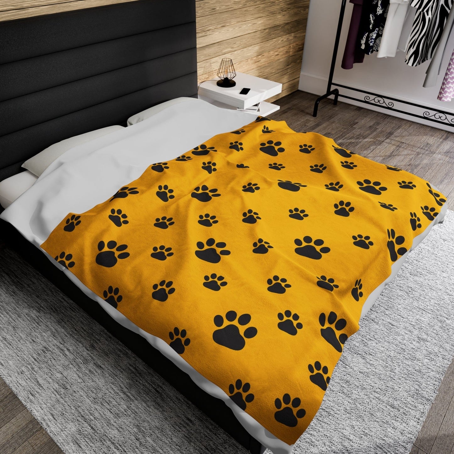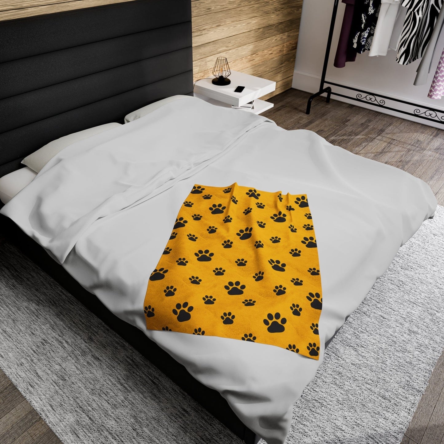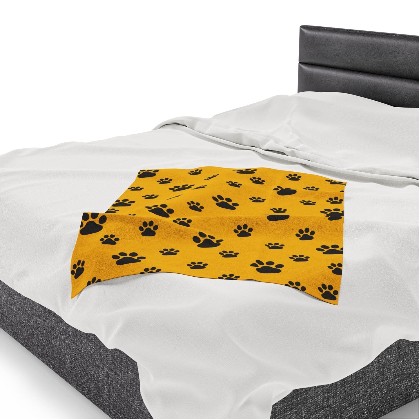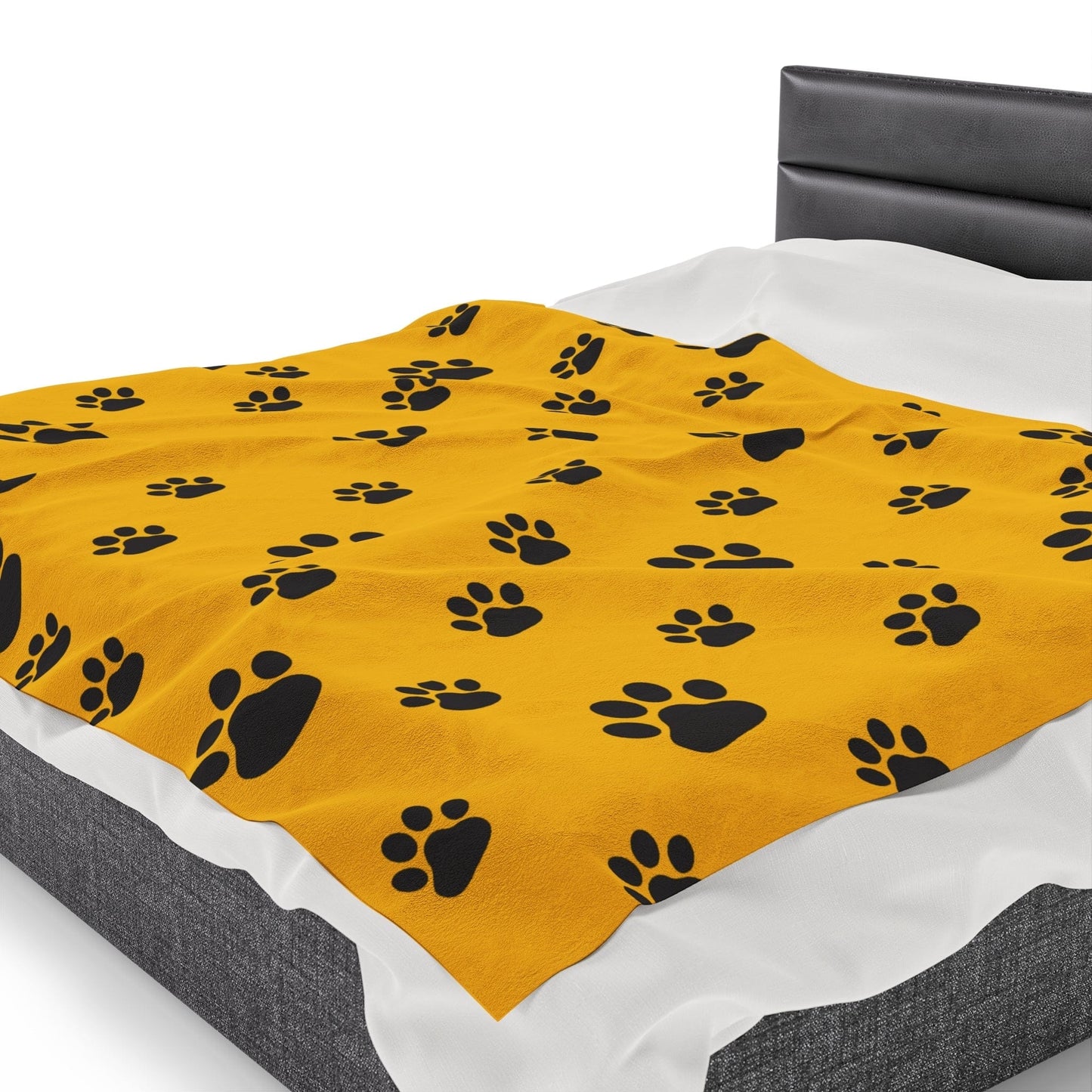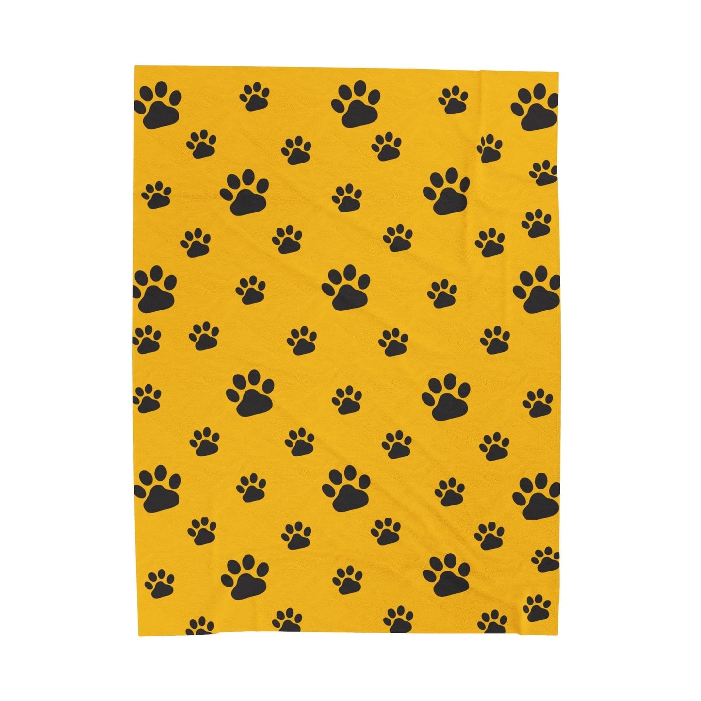 Printify Bedding Paw Print Velveteen Plush Blanket - Yellow