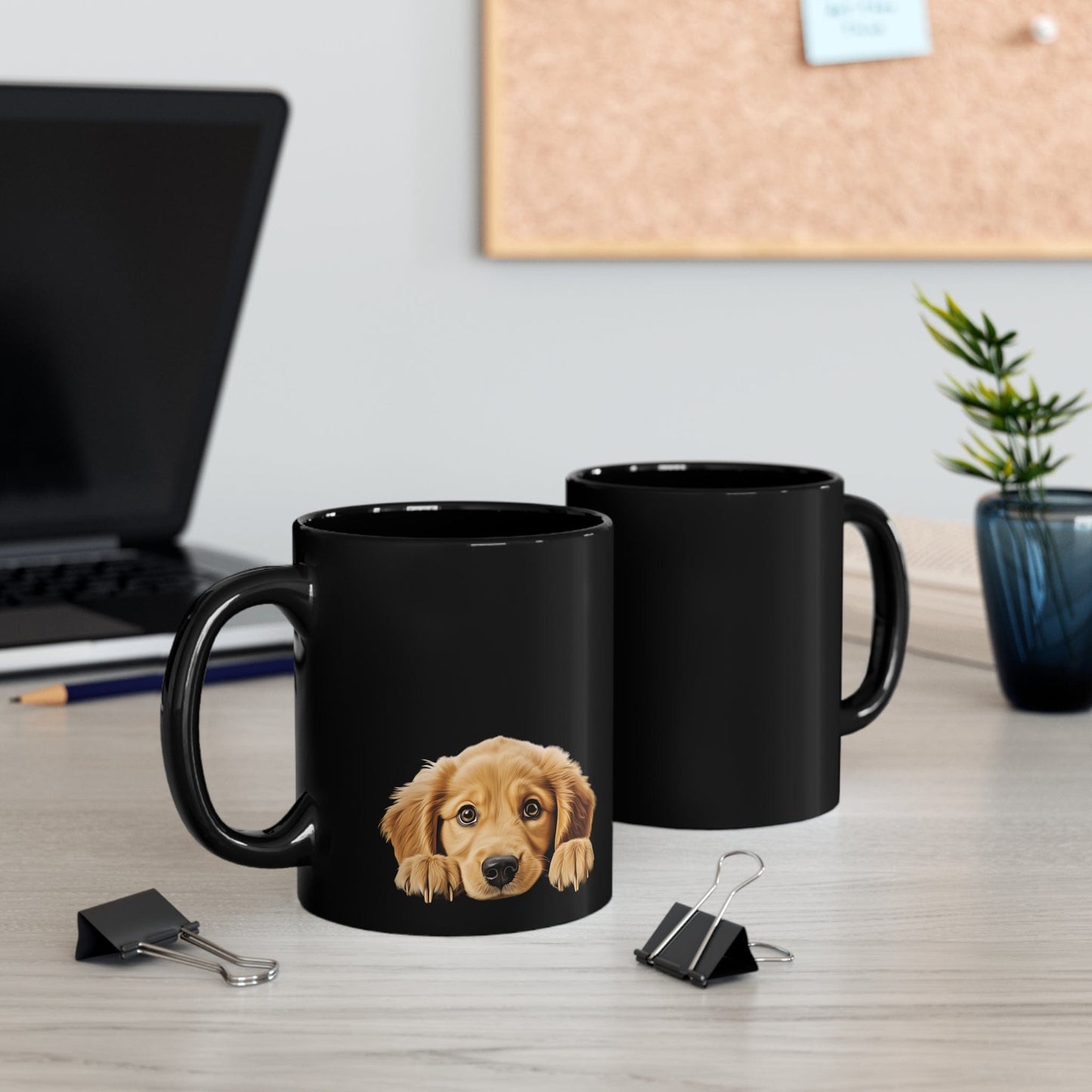 Printify Mugs Peeking Golden Retriever Puppy Black Ceramic Dog Mug 11 oz