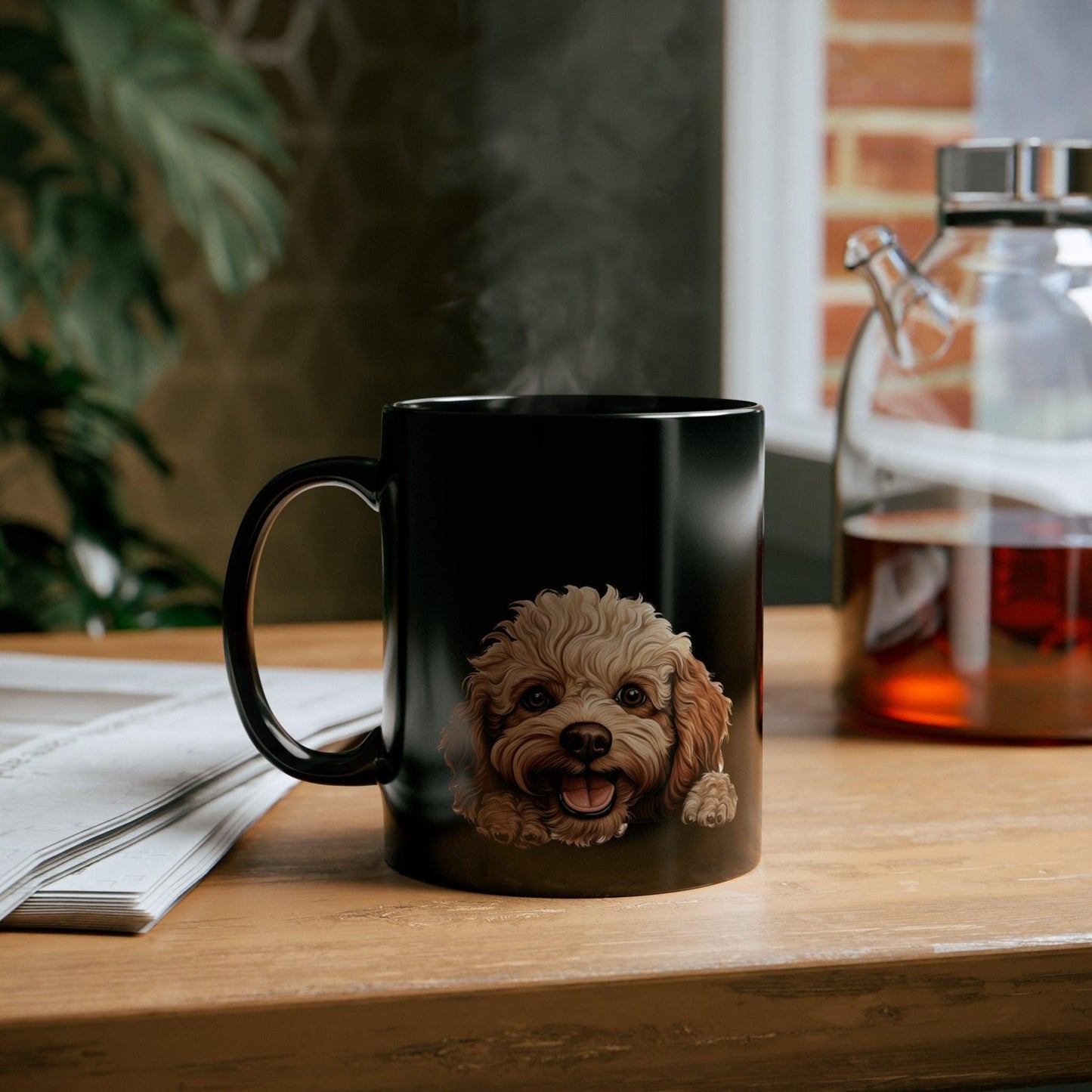 Printify Mugs Peeking Toy Poodle Puppy Black Ceramic Dog Mug 11 oz