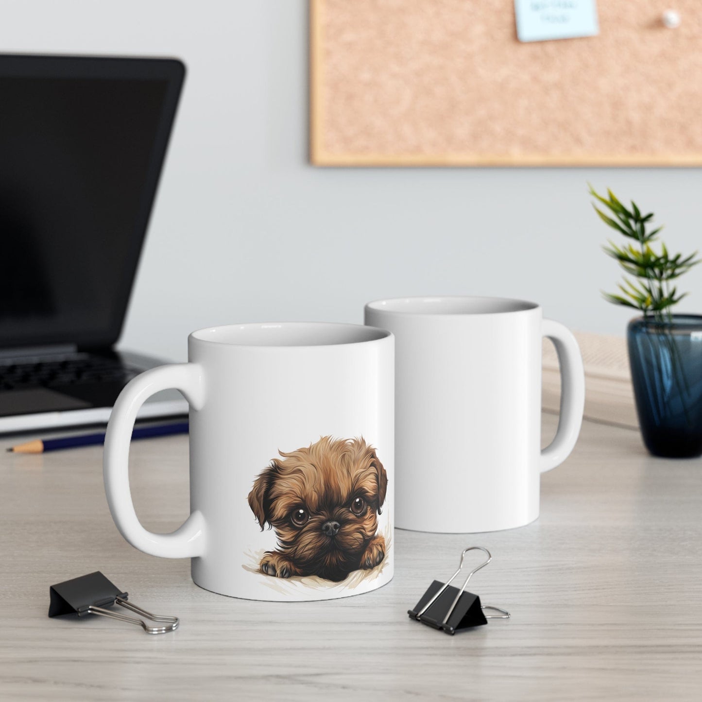 Printify Mugs Peeking Brussels Griffon Puppy White Ceramic Dog Mug 11 oz