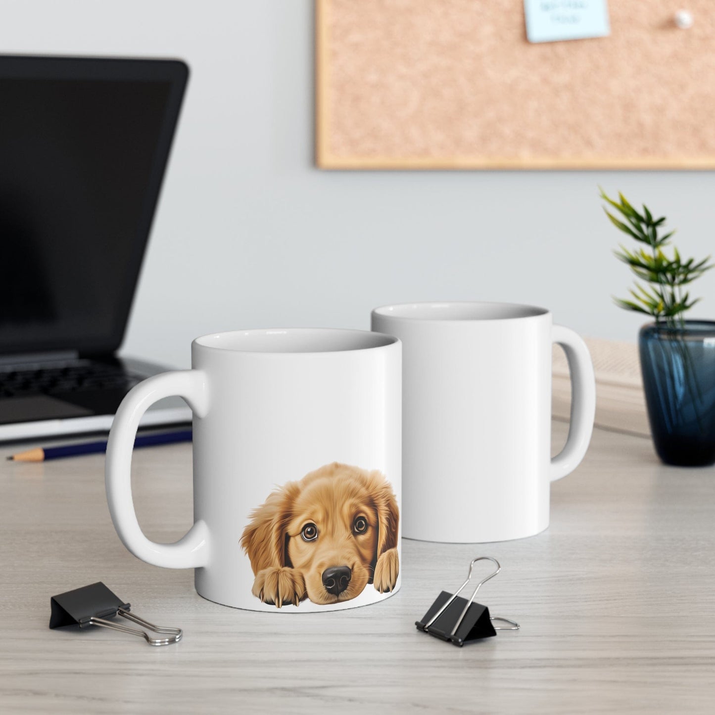 Printify Mugs Peeking Golden Retriever Puppy White Ceramic Dog Mug 11 oz