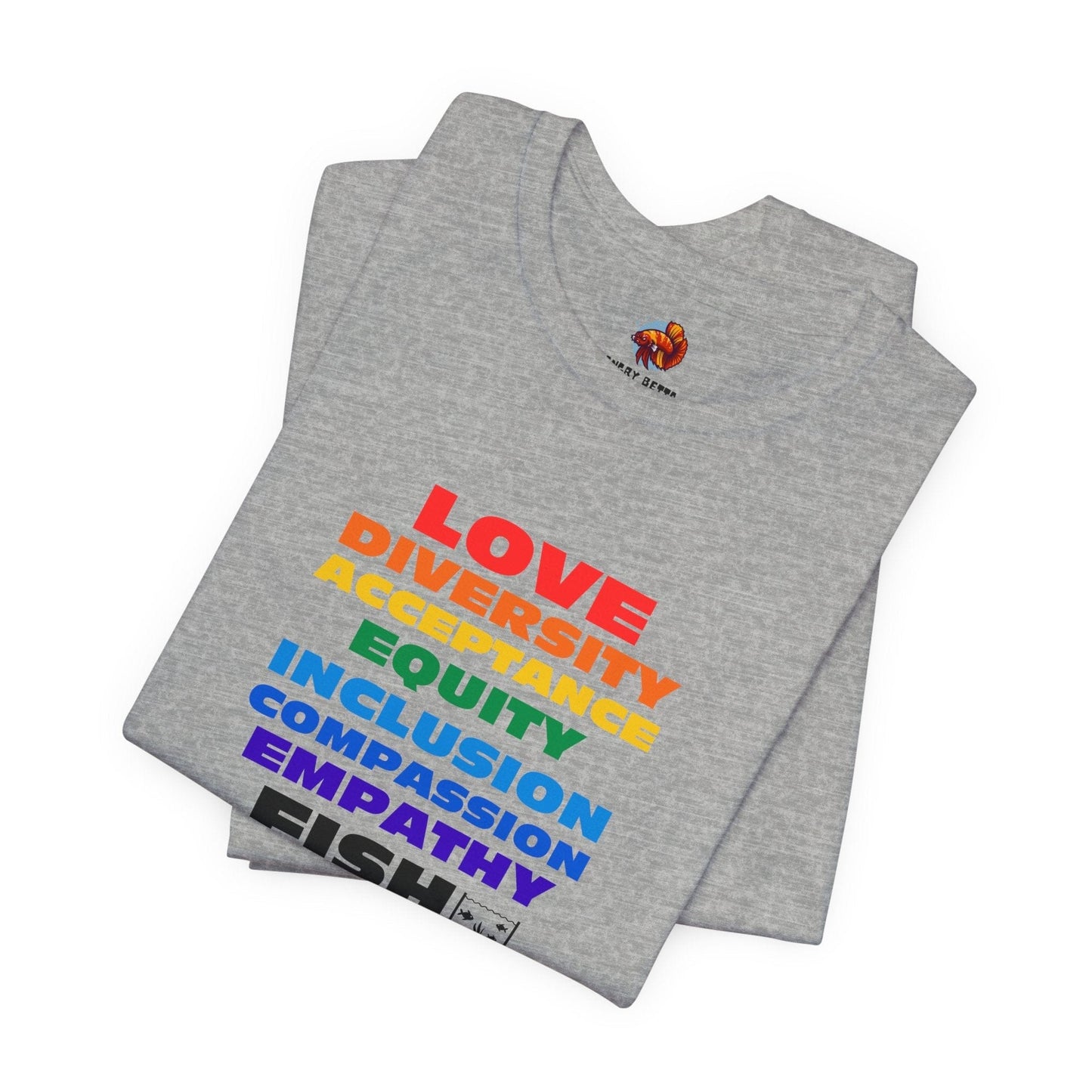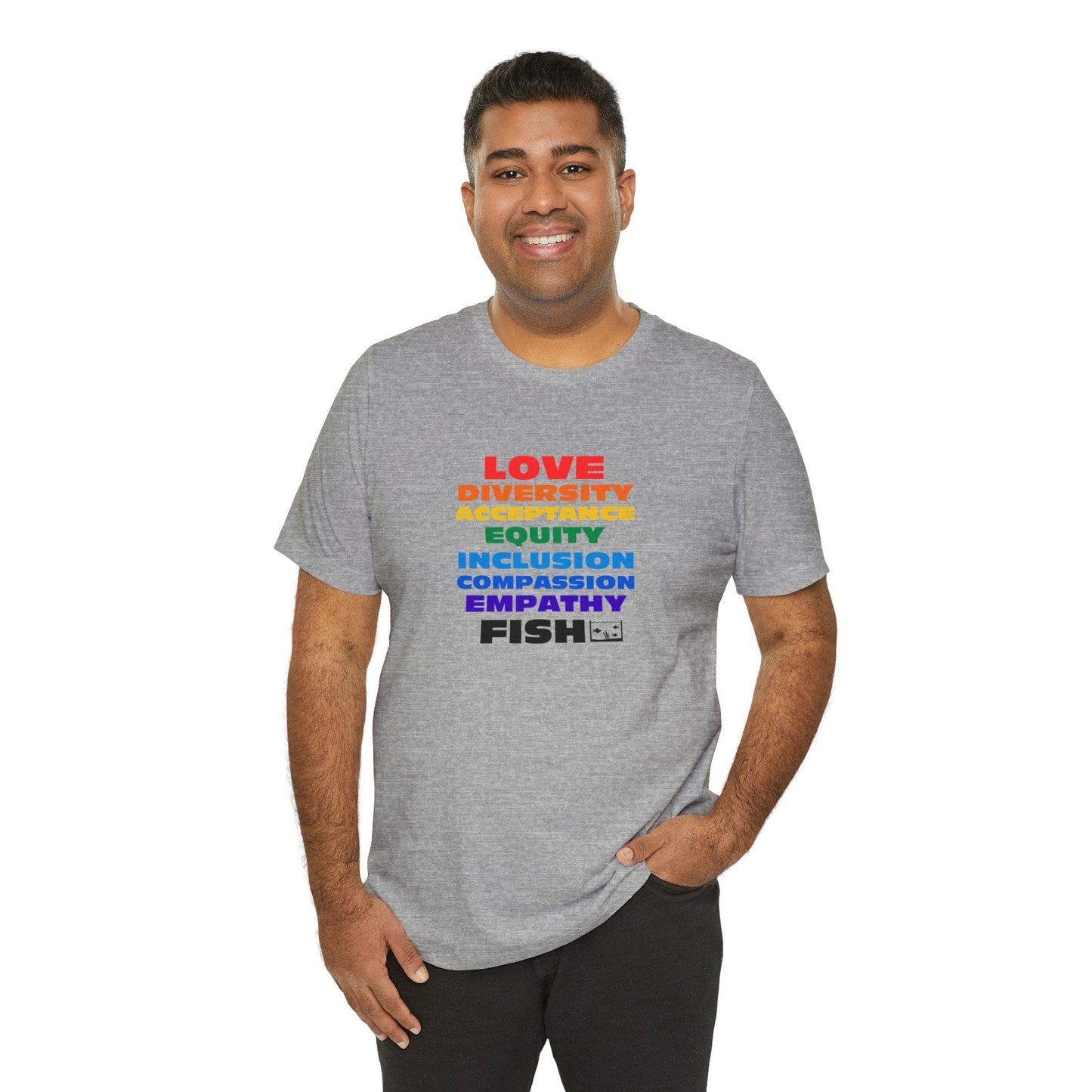 Printify T-Shirt Athletic Heather / S PRIDE LOVE AND FISH Unisex Tee