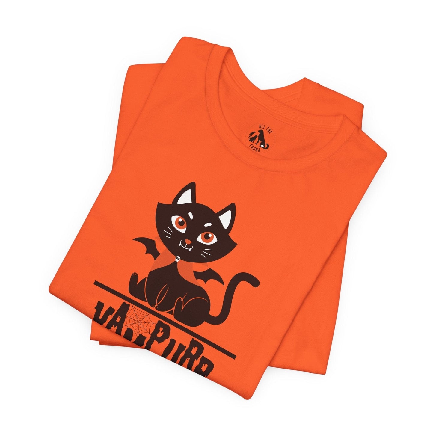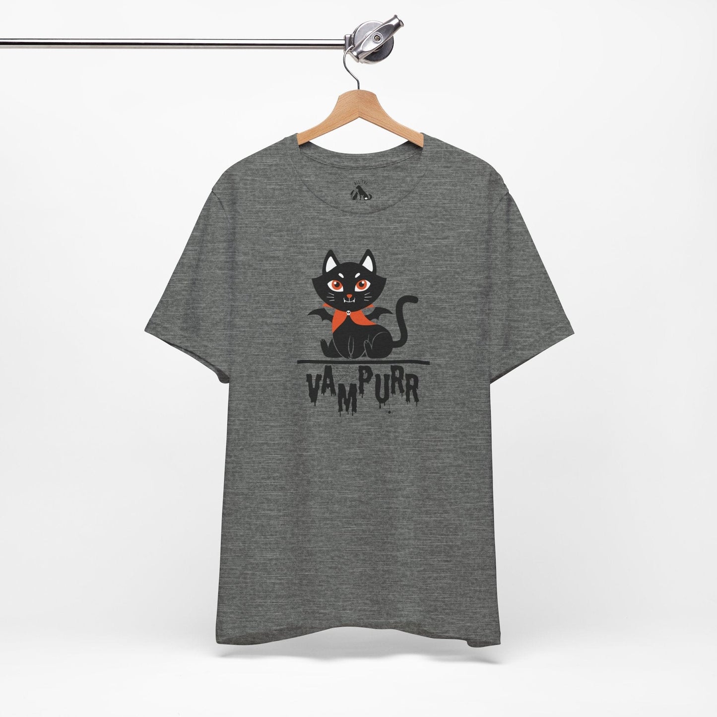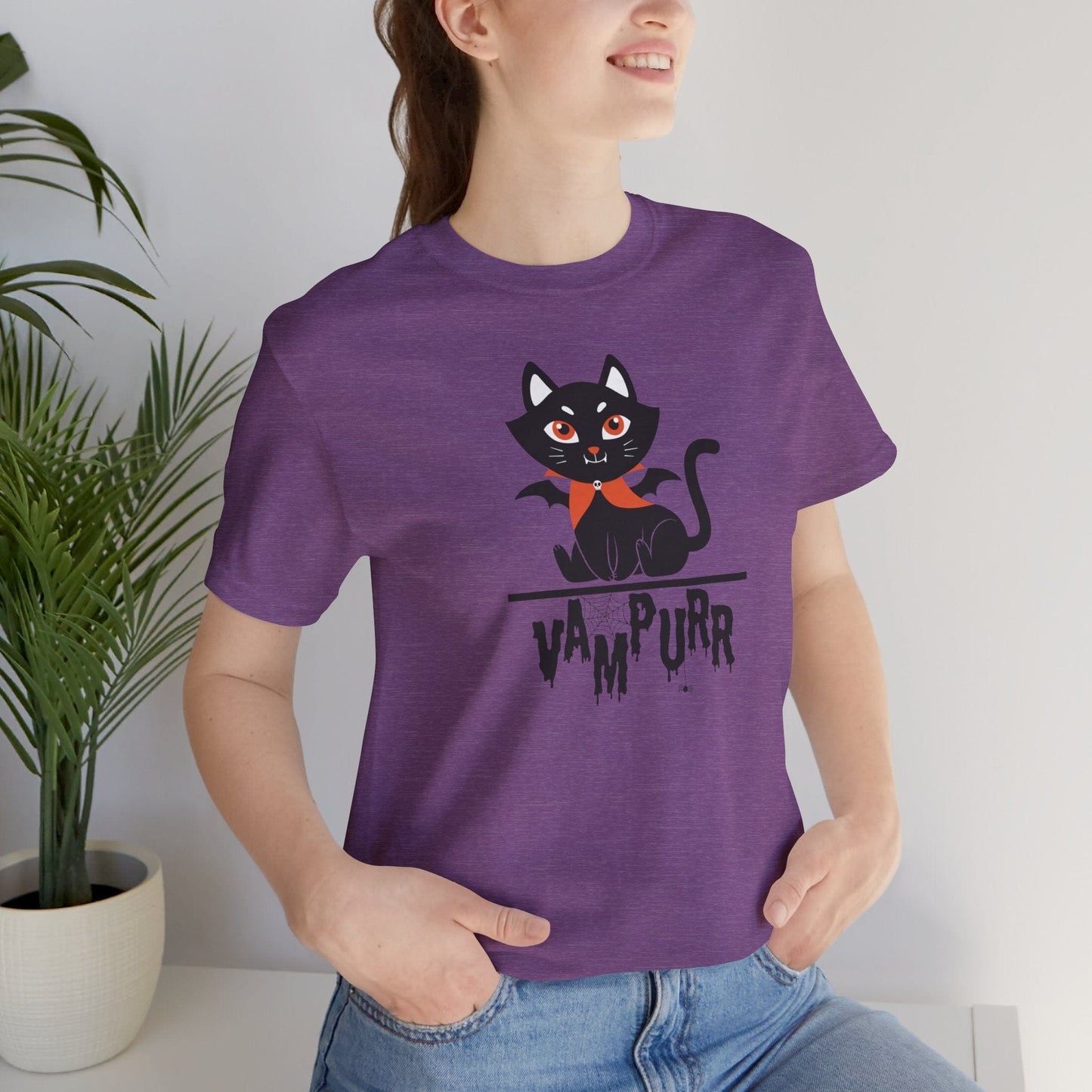 Plongez dans l'esprit d'Halloween avec le t-shirt VAMPURR ! Doté d'un motif de chat vampire à la fois effrayant et ludique, ce t-shirt est le mélange parfait d'étrange et de mignon. Idéal pour les fêtes d'Halloween, les friandises ou tout simplement pour montrer votre amour pour les chats avec une touche sombre.