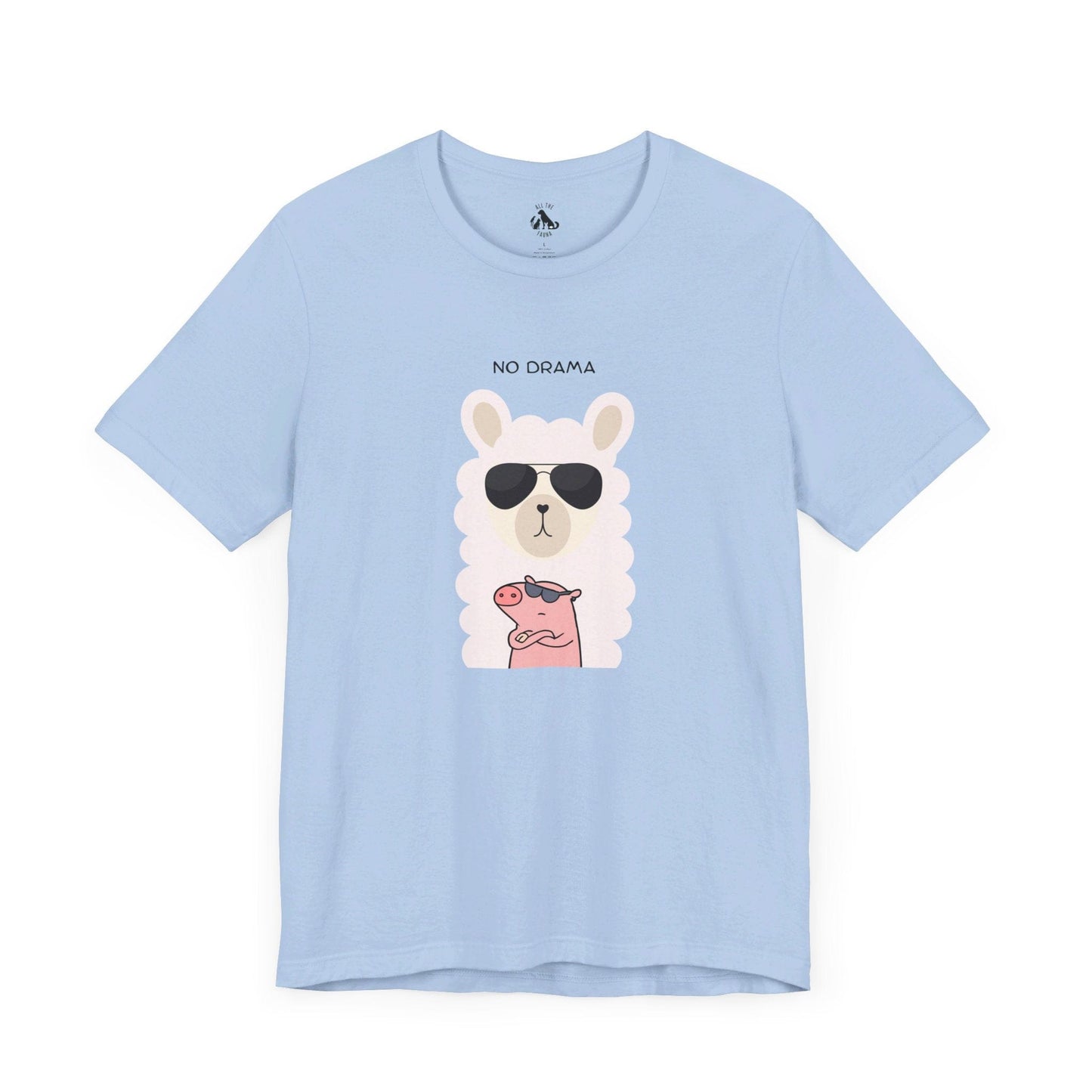 Printify T-Shirt Baby Blue / S NO DRAMA Llama and Pig Unisex Tee