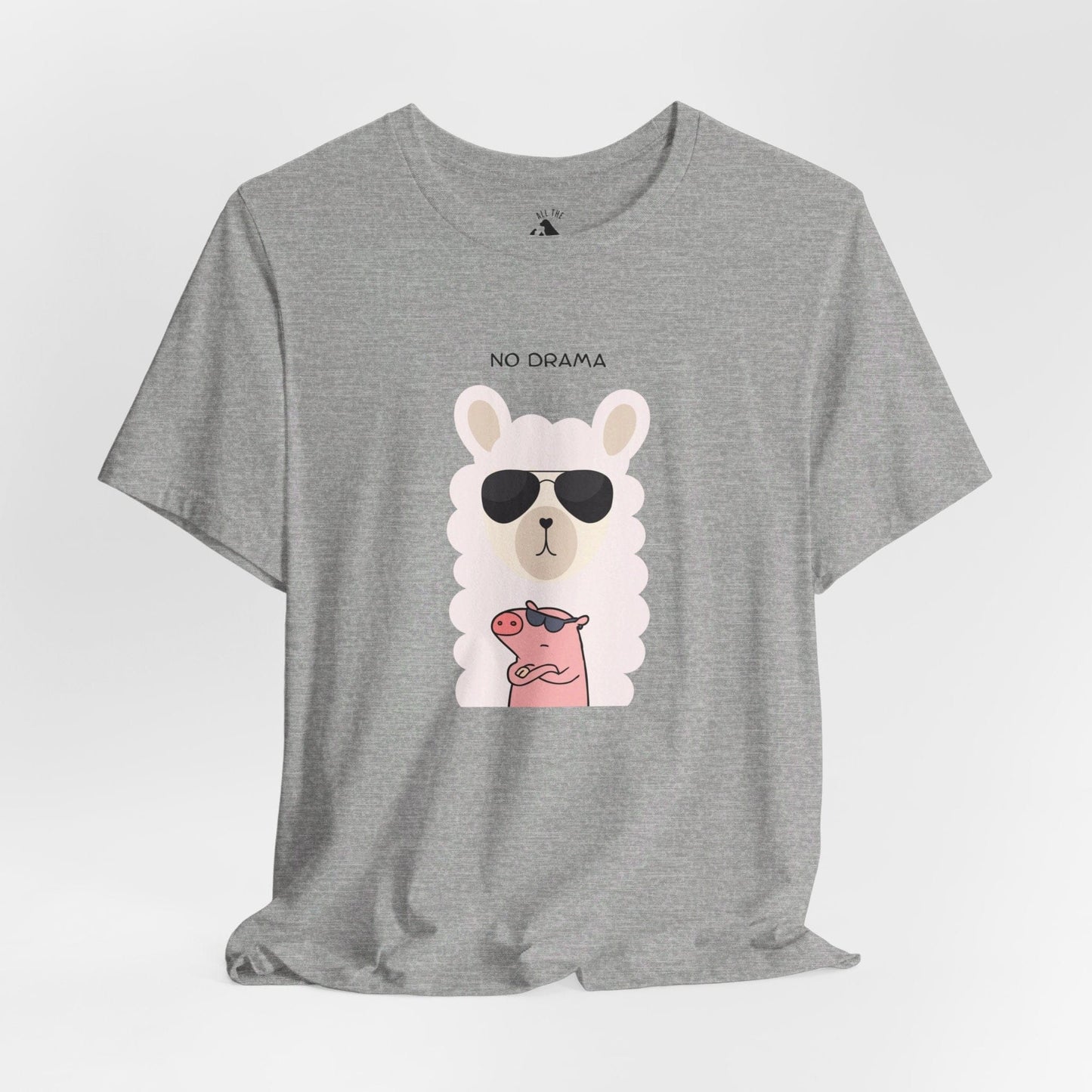 Printify T-Shirt Athletic Heather / S NO DRAMA Llama and Pig Unisex Tee