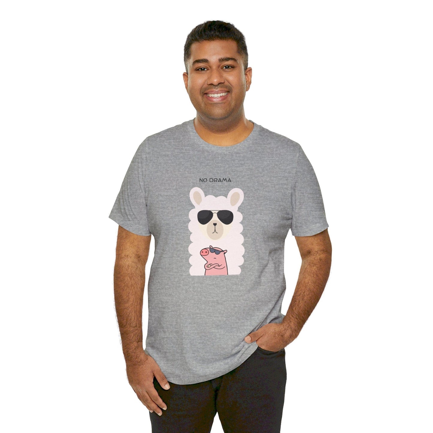 Printify T-Shirt NO DRAMA Llama and Pig Unisex Tee