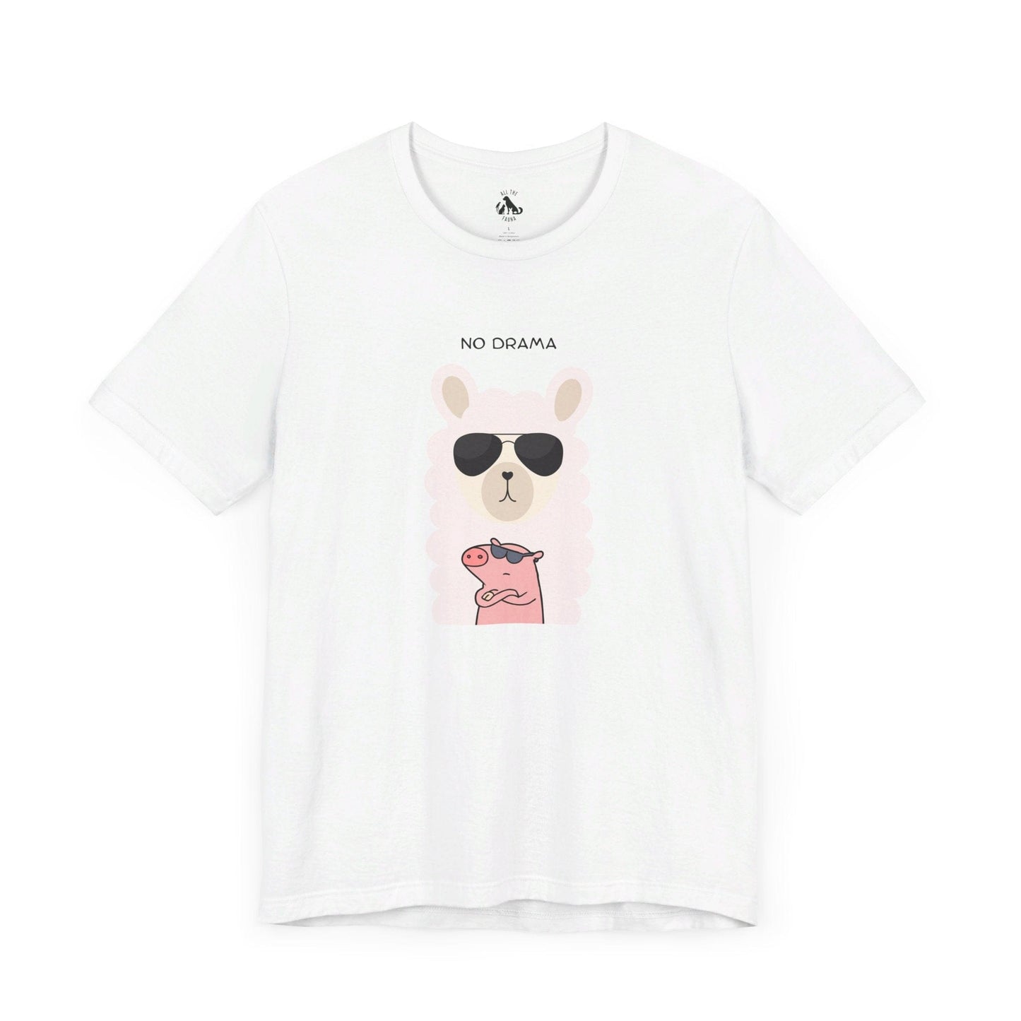 Printify T-Shirt White / S NO DRAMA Llama and Pig Unisex Tee